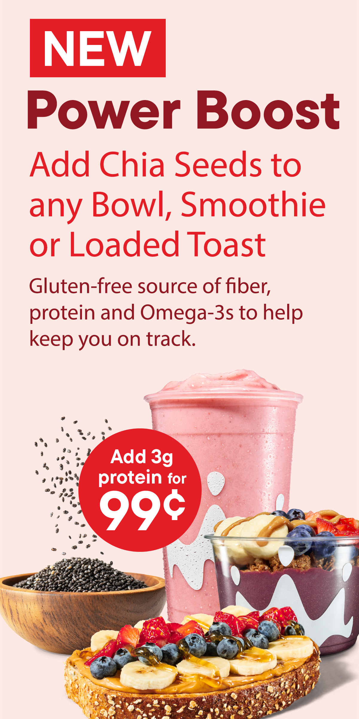 Add Chia Seeds to any Bowl, Smoothie or Loaded Toast.