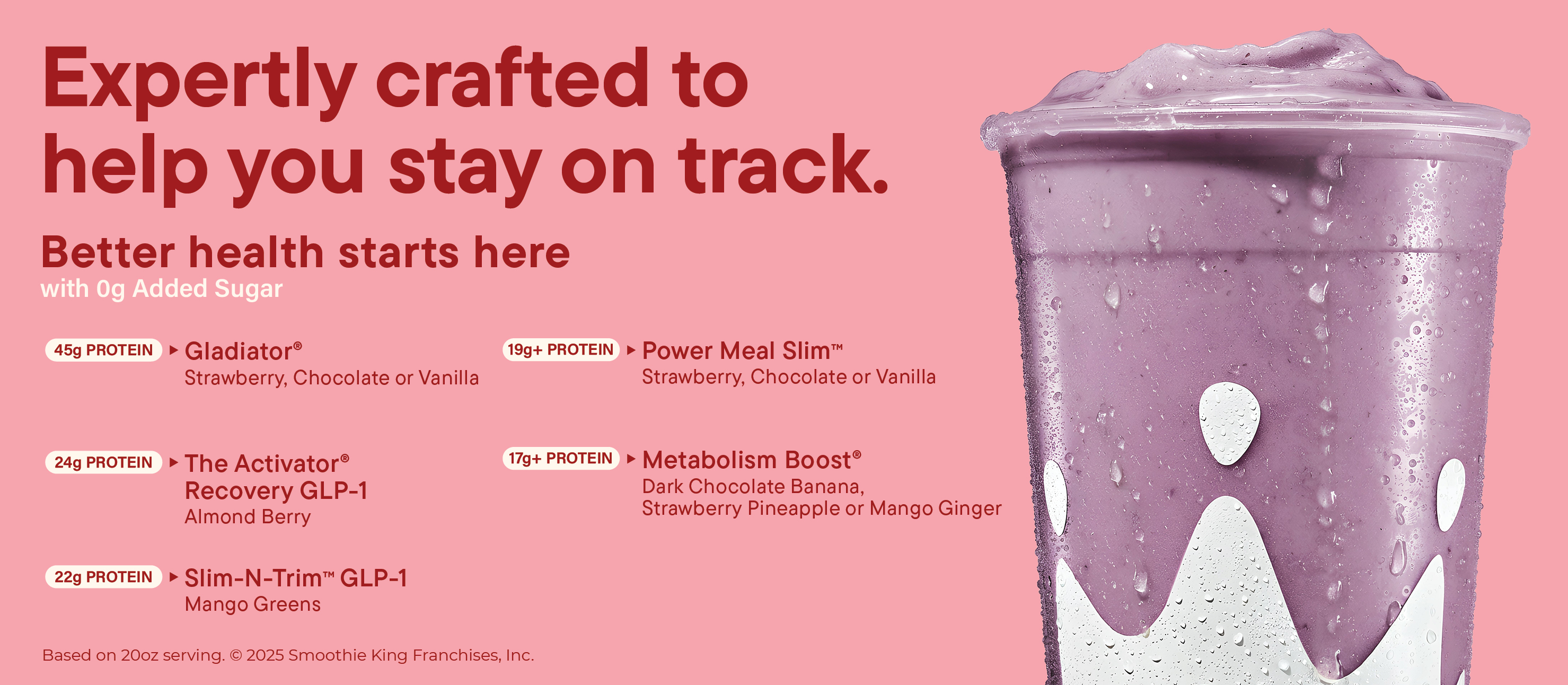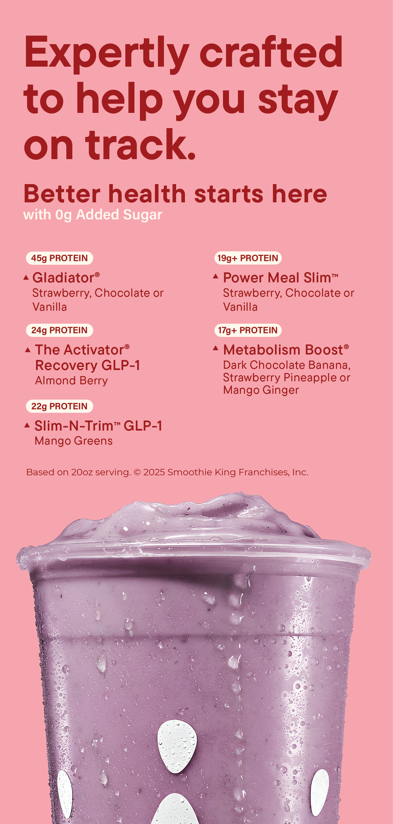 Based on 20oz serving ©2025 Smoothie King Franchises, Inc.